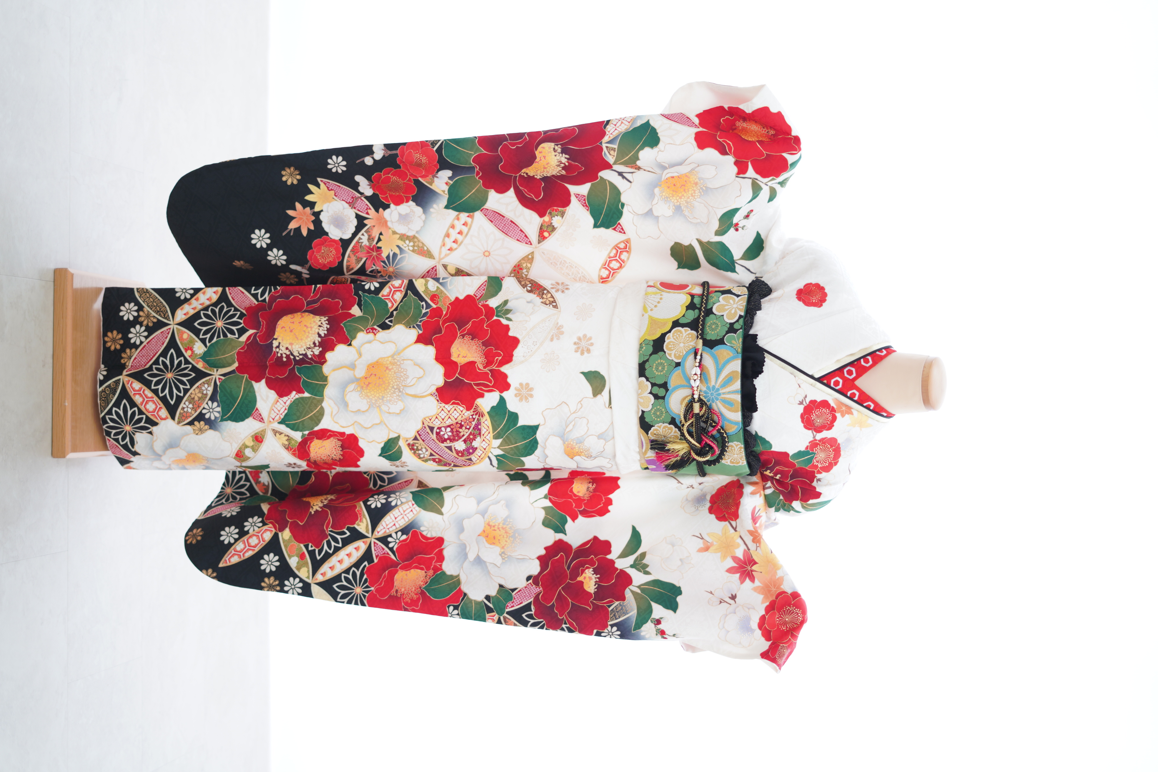 白生地に赤色のお花と白色のお花がとっても豪華