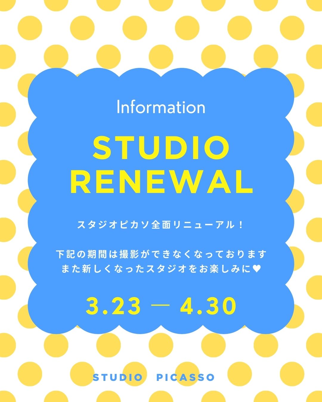 新しくなるスタジオを楽しみにお待ちください★