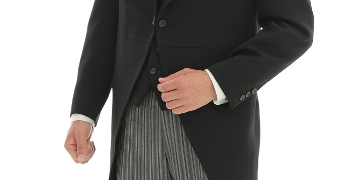 「モーニングコート」は、日中に着用する最も格式の高い男性の正礼装です。夜は「燕尾服」になります